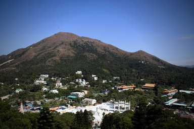 Ngong Ping (Chinese: 昂坪; Jyutping: ngong4 ping4; pinyin: Ángpíng) is a highland in the western part of Lantau Island, Hong Kong. It hosts Po Lin Monastery and Tian Tan Buddha amidst the hills which is about 34 m tall. There are several hills nearby which are also an attraction to tourists. It is now the terminus of the cable car ride Ngong Ping 360 which travels to Tung Chung. New facilities and tourist attractions have opened including the Ngong Ping Village, Walking with the Buddha, the Monkey's Tale Theatre and Ngong Ping Tea House. A youth hostel is located near the monastery. The second highest peak of Hong Kong, Lantau Peak, is at its southeast.