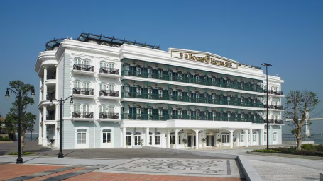 Hotel Rocks, also known as "Rocks" in Portuguese, is located within the Fisherman's Wharf complex in Macau, specifically at the Li Jiao Pier. It is a 5-story hotel with a total of 72 rooms. The entire hotel is designed in a Victorian architectural style reminiscent of the 18th century, offering panoramic sea views. It is adjacent to the Babylon Casino at Fisherman's Wharf and the Phoenix Slot Machine Arcade. Each room in the hotel is decorated in a Victorian style and features an independent balcony, allowing guests to enjoy unobstructed sea views.